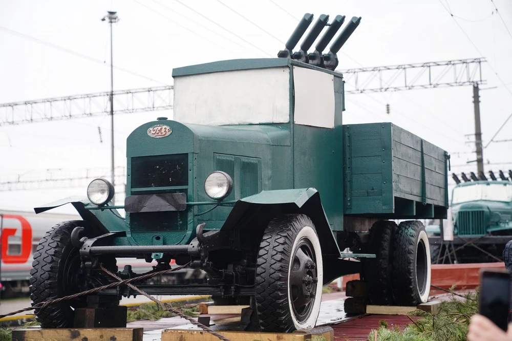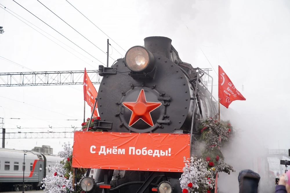 В его составе - два паровоза серии Л, шесть платформ с военной техникой, два вагона-теплушки с полевой кухней и предметами быта военных лет. Среди экспонатов - «Катюша», самоходная установка и легендарная «полуторка».