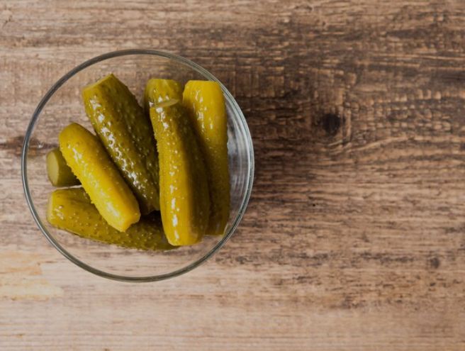 - Ингредиенты: чёрный хлеб, солёная красная рыба, свежие огурцы, зелёный лук, сливочное масло, укроп.