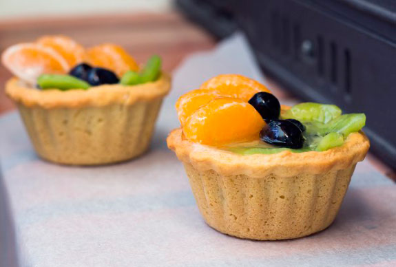 Дайте остыть и наполните корзинки фруктами. В нижнюю часть можно добавить крем или джем.