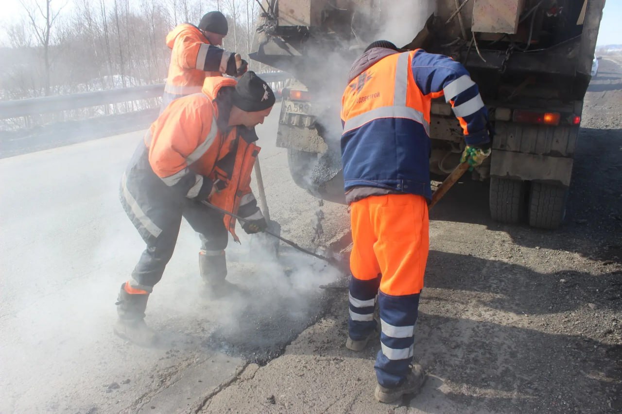 На региональных трассах Удмуртии после зимы ликвидируют аварийные ямы.