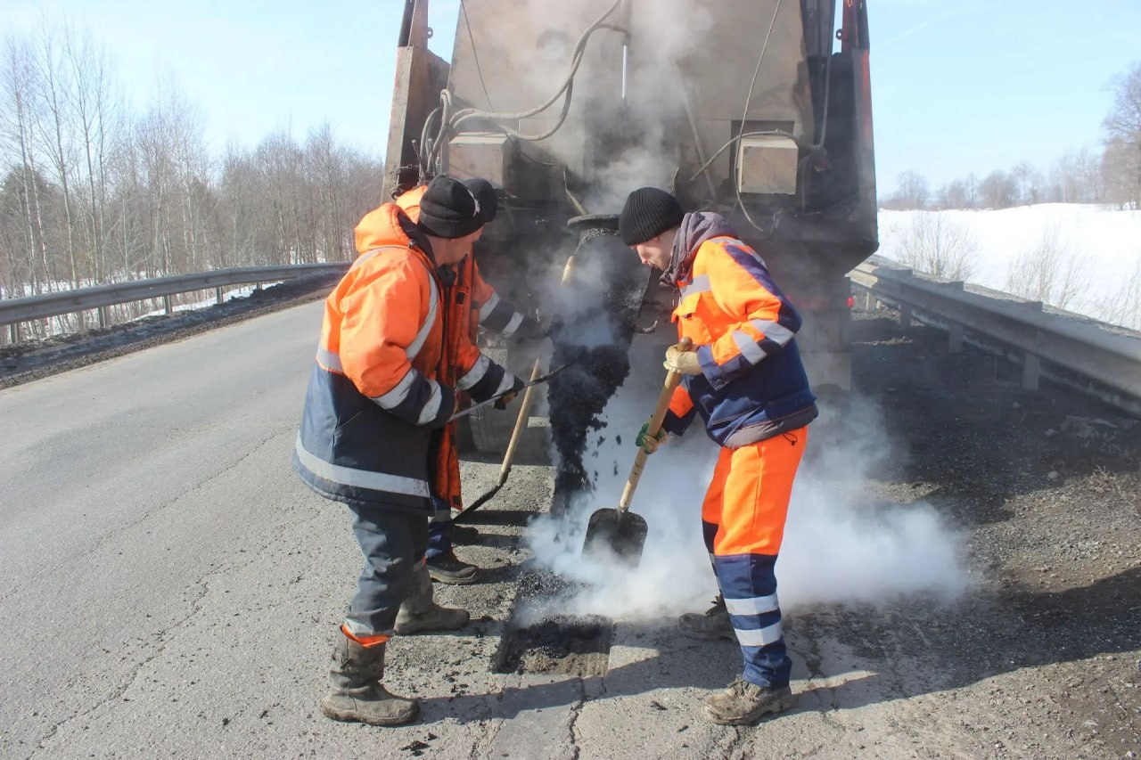 На региональных трассах Удмуртии после зимы ликвидируют аварийные ямы