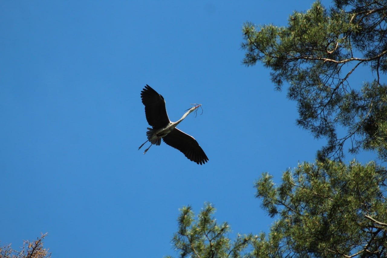 Птицы возвращаются обычно в конце марта — начале апреля. Они обустраивают гнезда (часто просто подновляют свои старые «дома») на высоких соснах в лесной части парка рядом с прудом, который дает им пищу для выращивания потомства. Пока пруд еще покрыт льдом, они питаются мелкими грызунами.