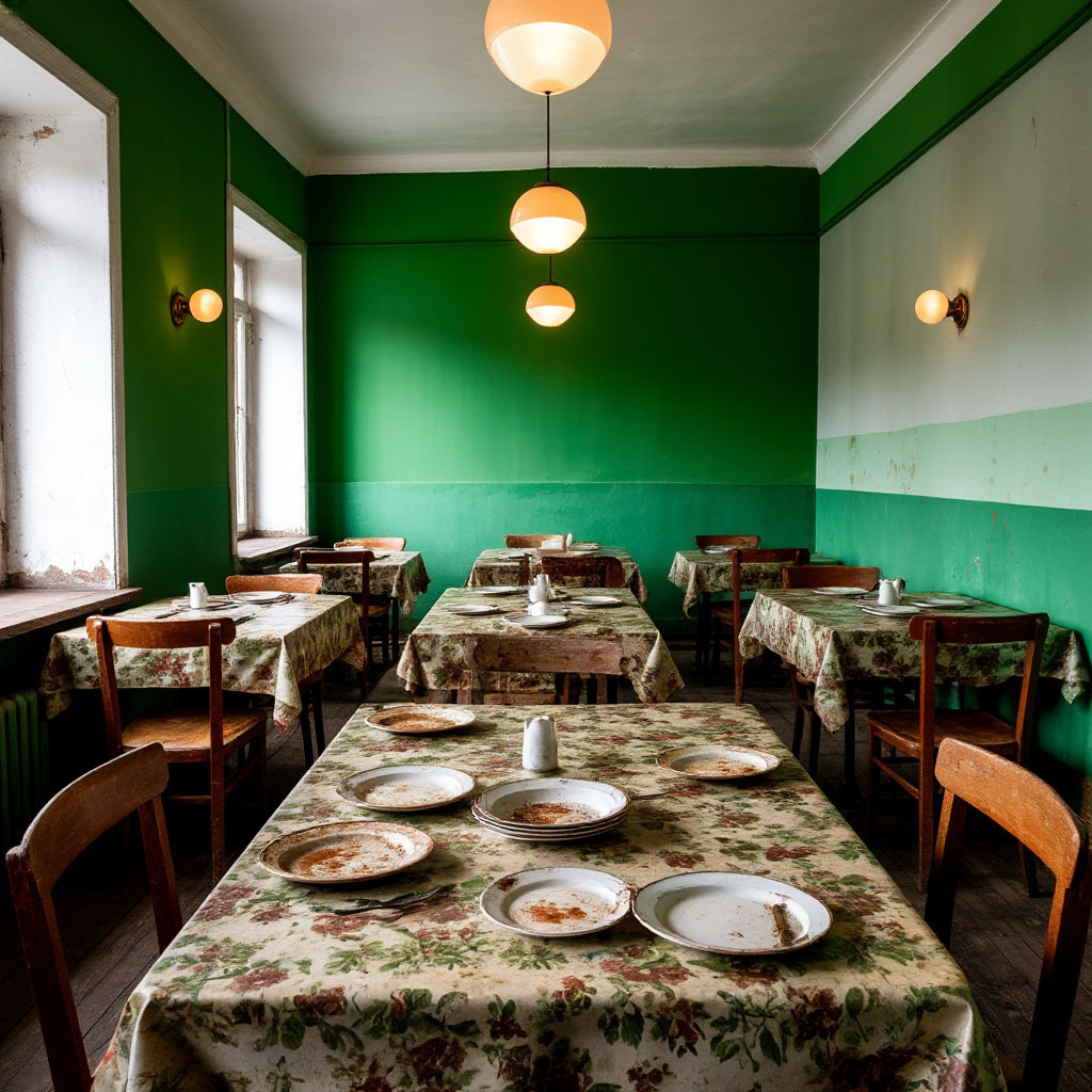 - Мебель: Неприемлемо шатающиеся столы и стулья, обтянутые липкой пленкой — идеальные спутники каждого обеда.