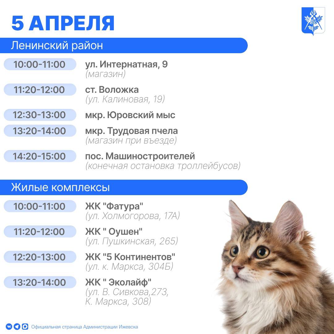 В Ижевске продолжают работать бесплатные выездные пункты вакцинации домашних животных от бешенства.