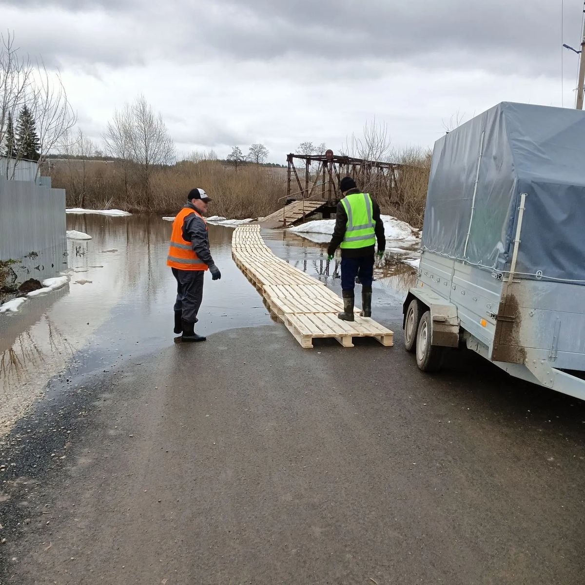 Накануне у моста на улице Набережной были уложены деревянные поддоны, после того, как подтопило спуски к нему.
