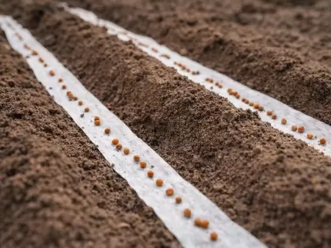 Суть данной техники заключается в том, чтобы нарезать тонкие полоски бумаги, аккуратно разместить на них семена моркови с подходящими интервалами и дать немного подсохнуть. Затем на грядке создают неглубокие бороздки, укладывают в них подготовленные полоски, поливают и присыпают грунтом. Такой способ обеспечивает равномерное прорастание семян, избавляя от необходимости в прореживании, что делает дальнейший уход за грядками значительно проще.
