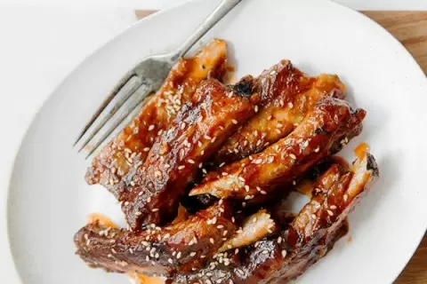 Готовые рёбрышки подают посыпанными кунжутом. Это блюдо отлично сочетается с жасминовым рисом или лапшой вок, а для любителей острого можно добавить несколько капель чили-масла для усиления вкуса. Пекинские рёбрышки могут быть поданы как горячими, так и холодными — в любом варианте они взорвут вкусовые ощущения.
