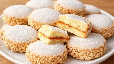 Это печенье с начинкой — настоящая находка для любителей сладкого. Оно отличается невероятной нежностью и рассыпчатостью. Основой является мягкое сливочное тесто с легким акцентом ореховой крошки, а в сердце печенья прячется густая варёная сгущёнка, которая прекрасно дополняет общий вкус. Внешний слой, присыпанный сахарной пудрой, мгновенно притягивает взгляд своим блеском, а карамельная начинка создает настоящую вкусовую симфонию.