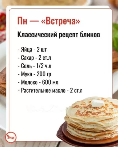 Начало Масленицы всегда символизирует встречу. Этот день особенно любим за традицию печь тонкие блинчики, которыми пчут гостей и родных. Представляем базовый рецепт, который гарантированно получится идеально!
