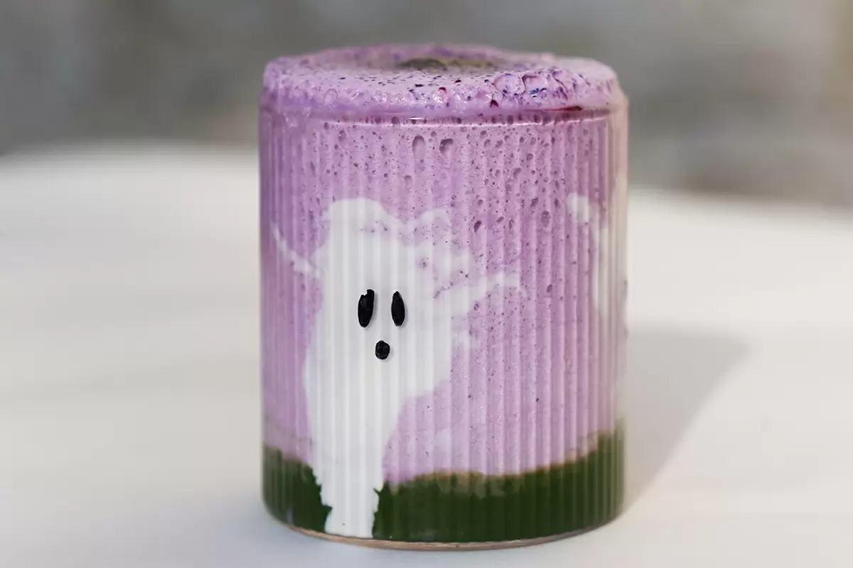 Сеть Angel Cakes старается соединить красоту тематического дизайна с неповторимыми вкусами. На данный момент одним из менюных хитов стал напиток «Мистик Матча», который сочетает в себе матчу, кокосовое молоко и йогурт. Его незабываемый цвет и вкус создаются благодаря экстракту фиолетового батата. Этот десерт не совсем стандартный, но он стал настоящей «питьевой кондитеркой» с яркими осенними нотами.