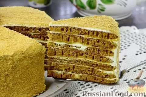 - Медовый торт на сковороде: Этот оригинальный десерт получается без использования духовки. Коржи из медового теста готовятся прямо на сковороде под крышкой. Каждый слой смазывается нежным кремом из сметаны и сливочного сыра, после чего торт пропитывается и охлаждается в холодильнике.