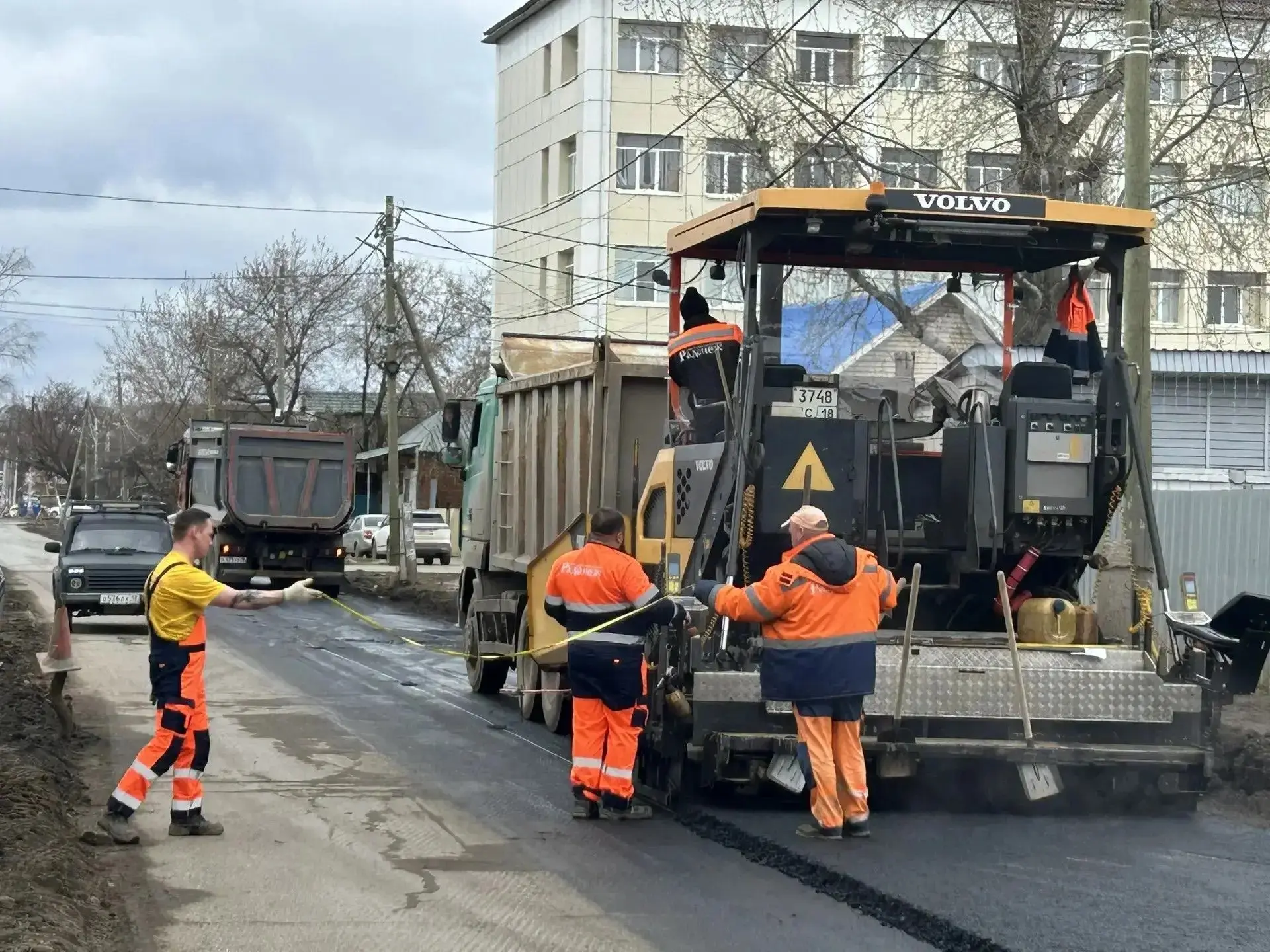 Подрядчик уже выполнил фрезерование старого покрытия и начал укладывать асфальт. Техника работает на отрезке от ул. В Сивкова до ул. К. Маркса. Работы идут по нацпроекту.
