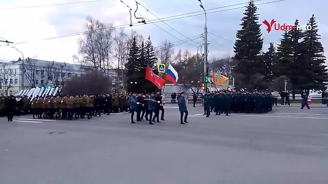 Наш корреспондент снял видео с марширующими колоннами военных, силовиков, кадетов и студентов колледжей. Некоторые отряды были в исторических костюмах времен Великой Отечественной войны. Подробнее о том, как в столице Удмуртии готовятся к Дню Победы – в репортаже, который будет опубликован сегодня на нашем сайте.